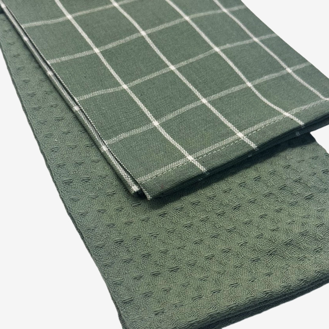 Pack 2 Panos de Cozinha Sarja/Favo Verde
